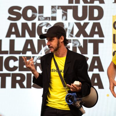 • Fotografia d'Aida Boix parlant amb micro al Rusc 2025